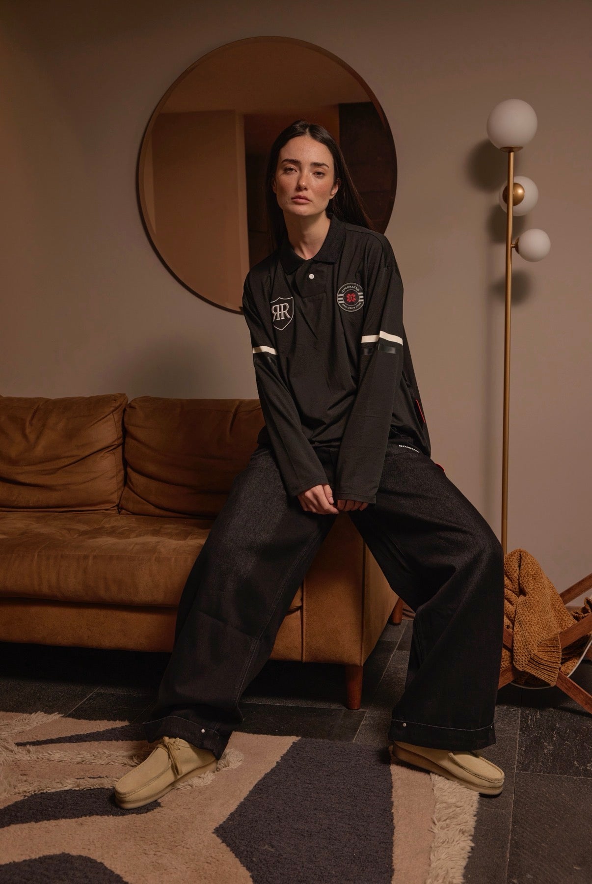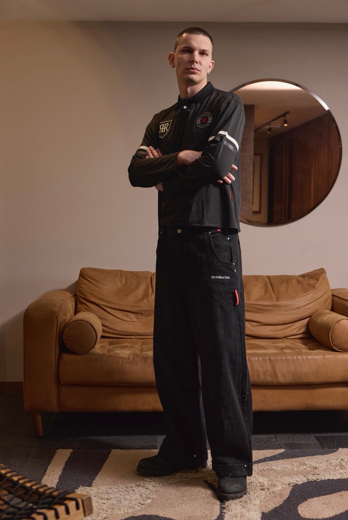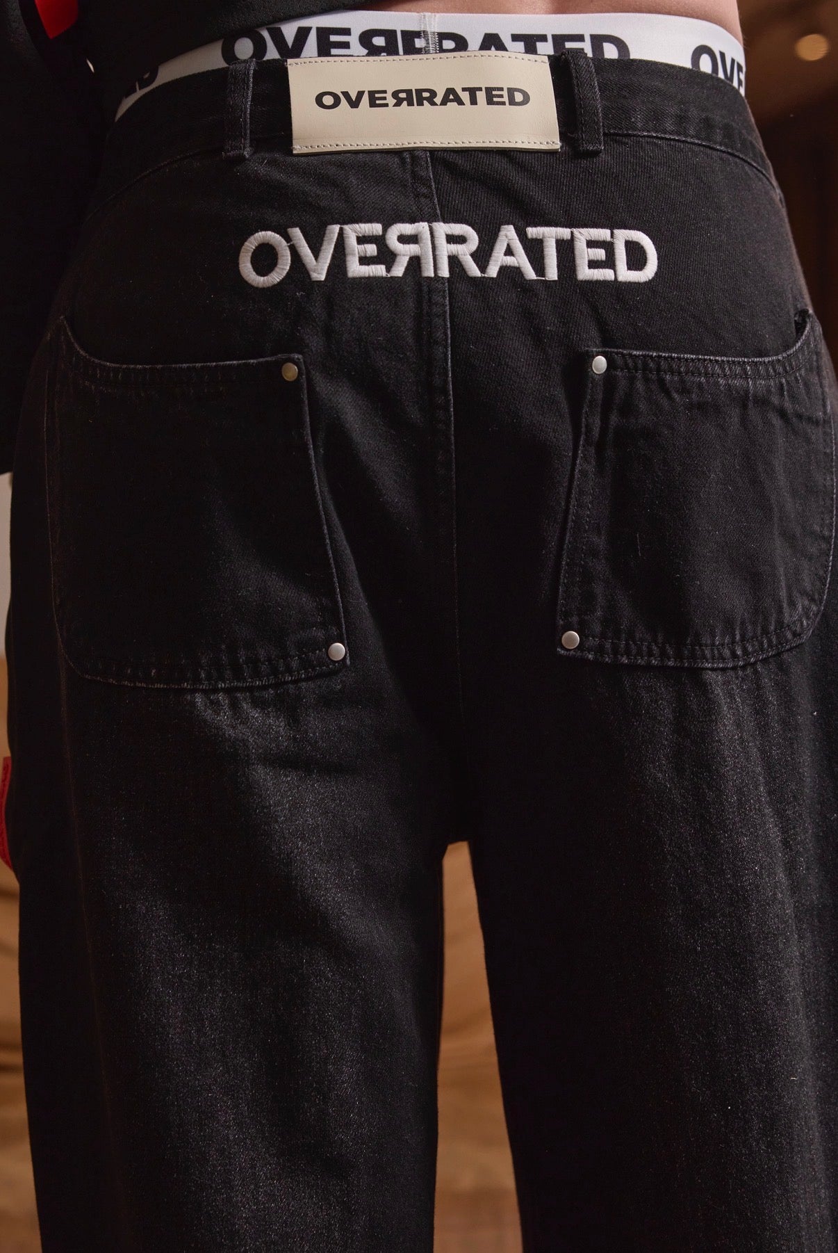 Baggy jeans in faded black that combine comfort and urban style. Designed with strategically placed rivets that add an industrial touch and personality to the look. The distressed fabric creates an authentic vintage finish, while the relaxed fit allows freedom of movement without compromising the silhouette. Perfect for those looking for a versatile garment that works for both casual and streetwear looks.
