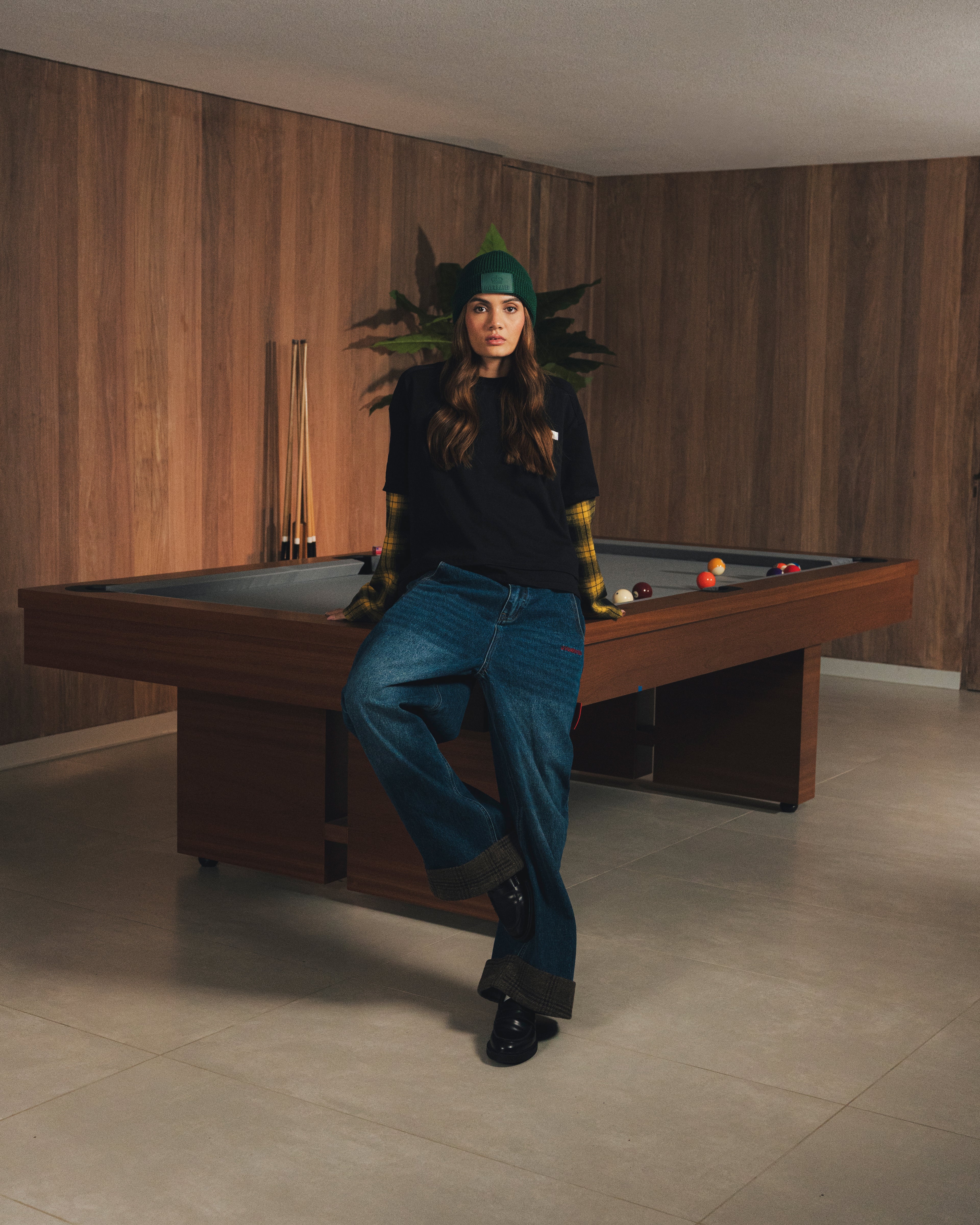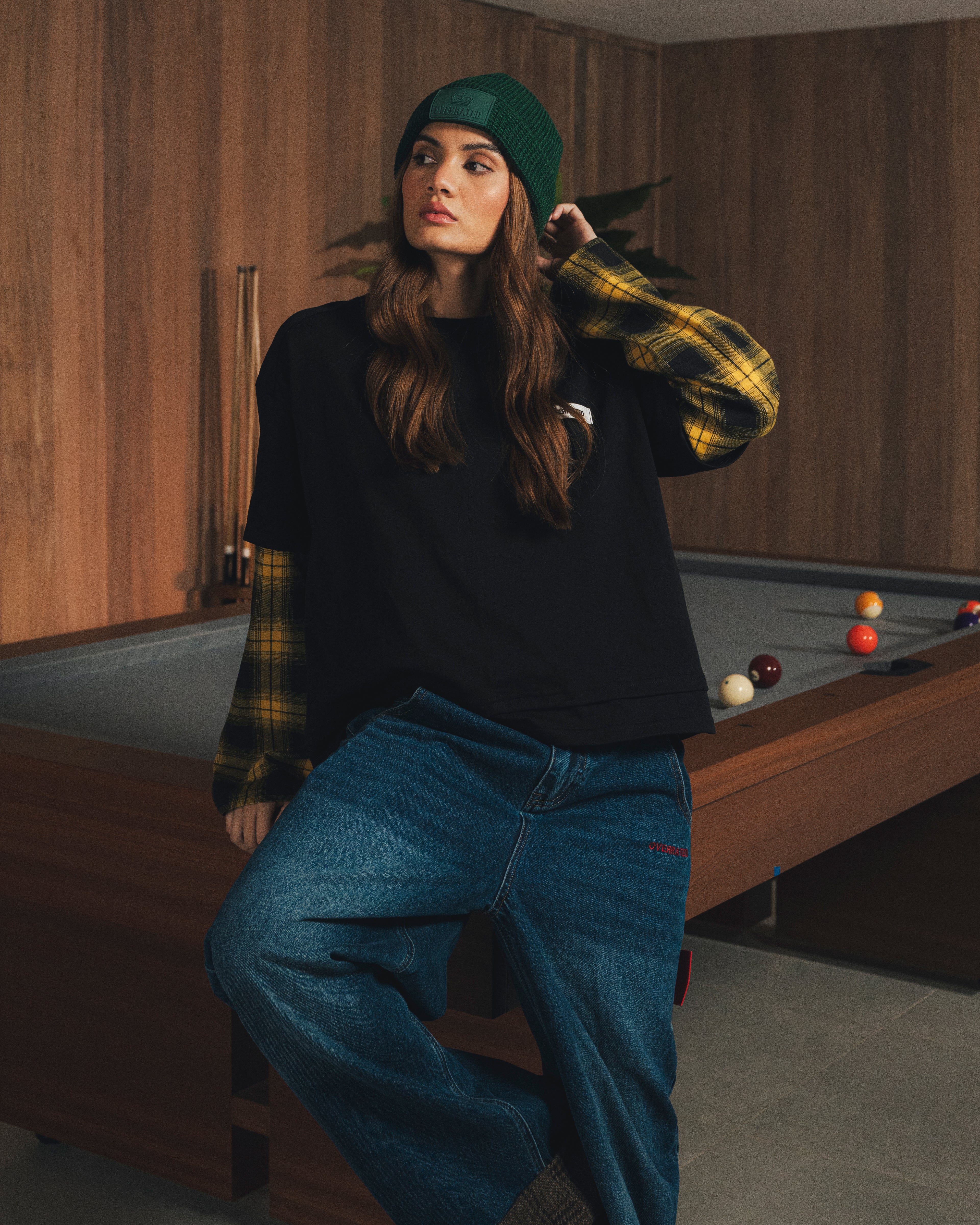 The Overrated Black Basic Plaid T-Shirt combines urban style with unique details, including its yellow plaid sleeves. A versatile and modern garment for those who want to stand out with attitude and authenticity.
