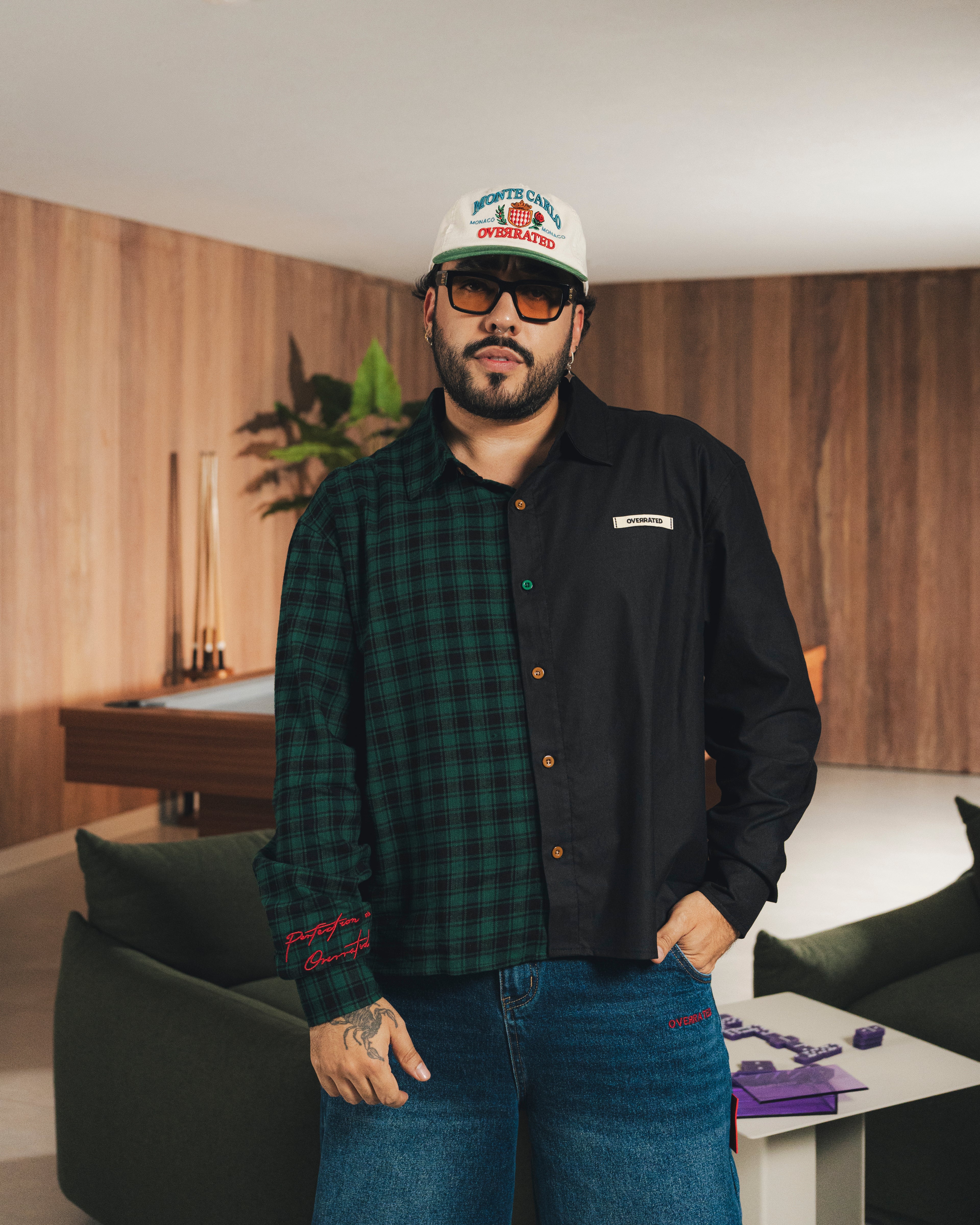 La Overrated Green and Black Shirt destaca por su estilo moderno y contraste de colores. Una camisa versátil que combina el espíritu urbano con la esencia distintiva de Overrated, ideal para un look casual con actitud.